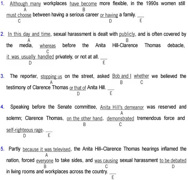 These drills cover errors from Part 3: parallel construction, misplaced modifiers, faulty comparison, idiom, diction, redundancy, voice, and mood.