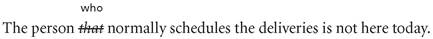 All of the following sentences are written in an informal, conversational style. Rewrite the sentences in a more formal style by changing that to who and whom where appropriate. If no change is necessary, write OK above that.