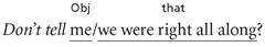 Underline the complements in the following sentences. Label the type of complement using the following terms: IO + DO for indirect object + direct object; Obj + NP Comp for object + NP complement; Obj + Adj Comp for object + adjective complement; Obj + Adv of Pl for object + adverb of place; Obj + That for object + that clause; To + That for to phrase + that clause; Obj + Inf for object + infinitive; Obj + Base for object + base form; or Obj + Pres Part for object + present participle.