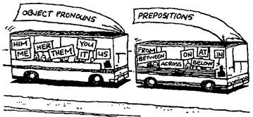 There is just one more thing to notice. After a preposition, the pronoun in the phrase is always the object pronoun.